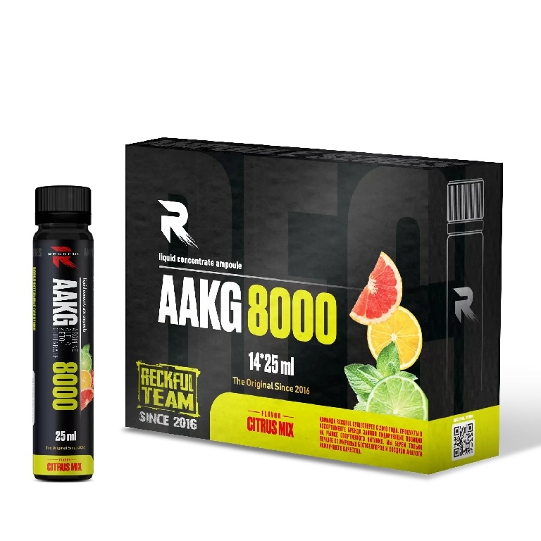 Reckful® AAKG 8000 mg — мощный пампинг и приток энергии перед тренировкой Reckful® AAKG (Аргинин Альфа-Кетоглутарат) — это концентрированный предтренировочный комплекс в жидком формате, содержащий 8000 мг AAKG в одной ампуле. Продукт предназначен для улучшения кровотока, усиления пампинга, увеличения выносливости и стимуляции выработки оксида азота (NO).